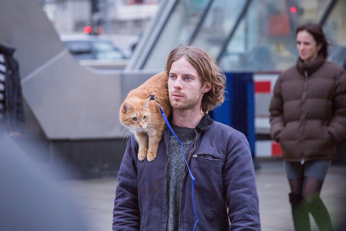 James Bowen, a homeless busker and recovering drug addict, has his life transformed when he meets a stray ginger cat.