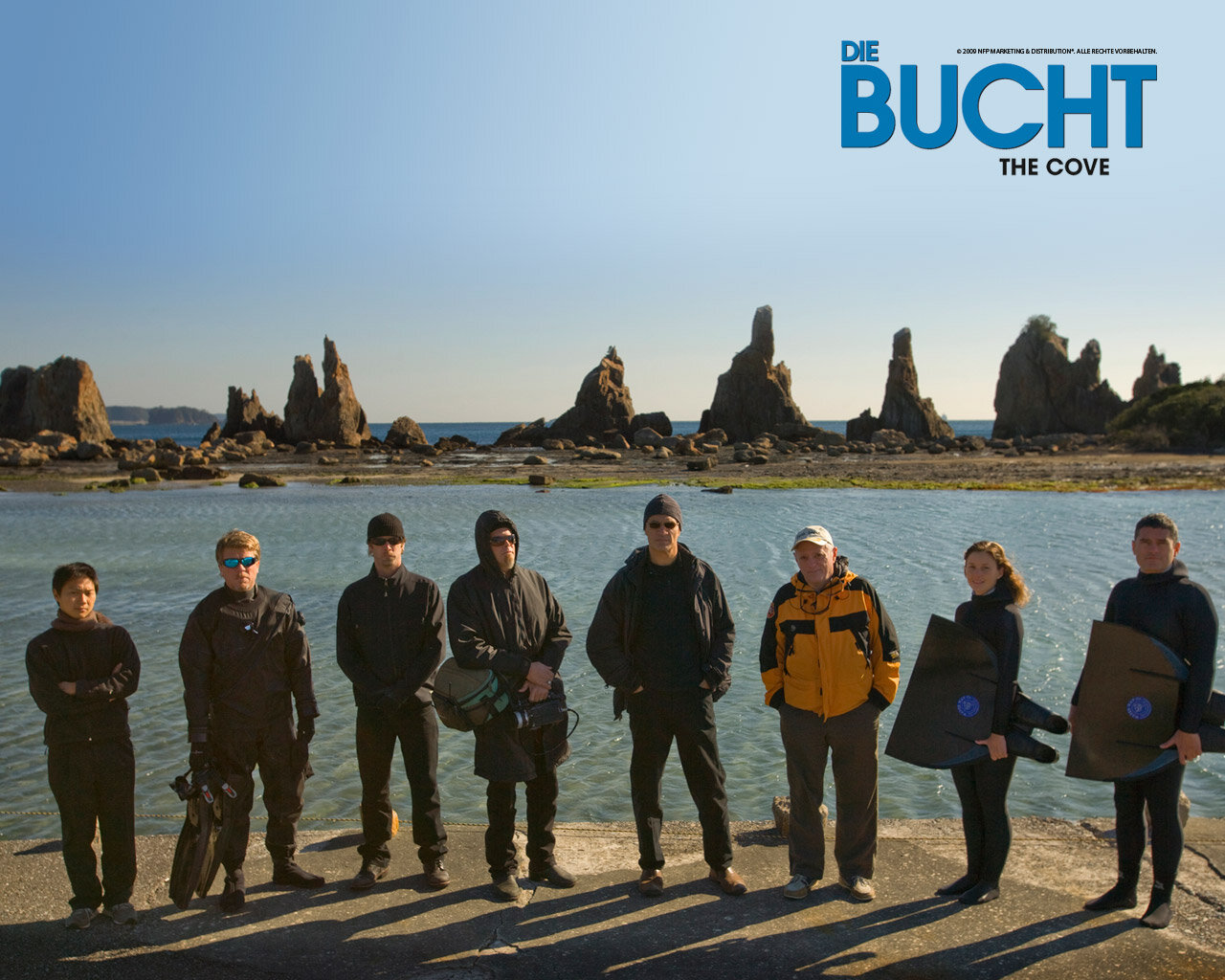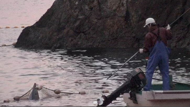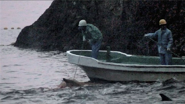 В картине «Бухта» речь идет о ежегодной охоте на дельфинов, которую устраивают жители города Таиджи. Рыбаки загоняют млекопитающих в узкую бухту, часть из них отлавливают для продажи в океанариумы, но большую часть убивают, чтобы продать мясо на рынках. В год в прибрежных водах Таиджи гибнет до 23000 дельфинов.